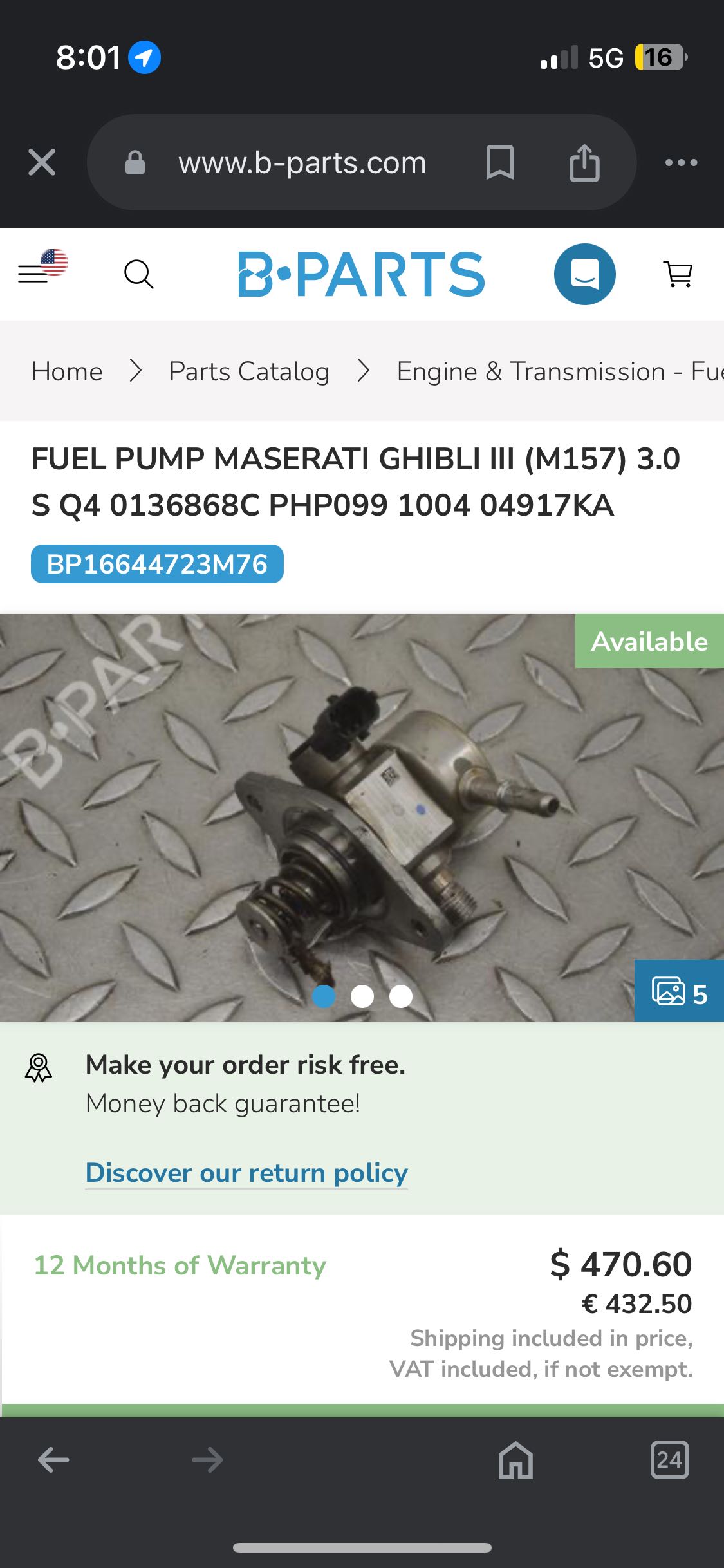 I have a high pressure fuel pump for a Maserati Ghibli .